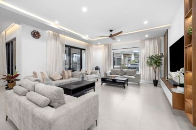 This exquisite home is a true statement of architectural brilliance, featuring 6 bedrooms, 5.5 bathrooms, and secure parking for up to 5 cars (including a double lock-up garage and additional backyard car spaces). Every corner has been crafted with precision, showcasing premium finishes, cutting-edge technology, and superior comfort for modern family living.
